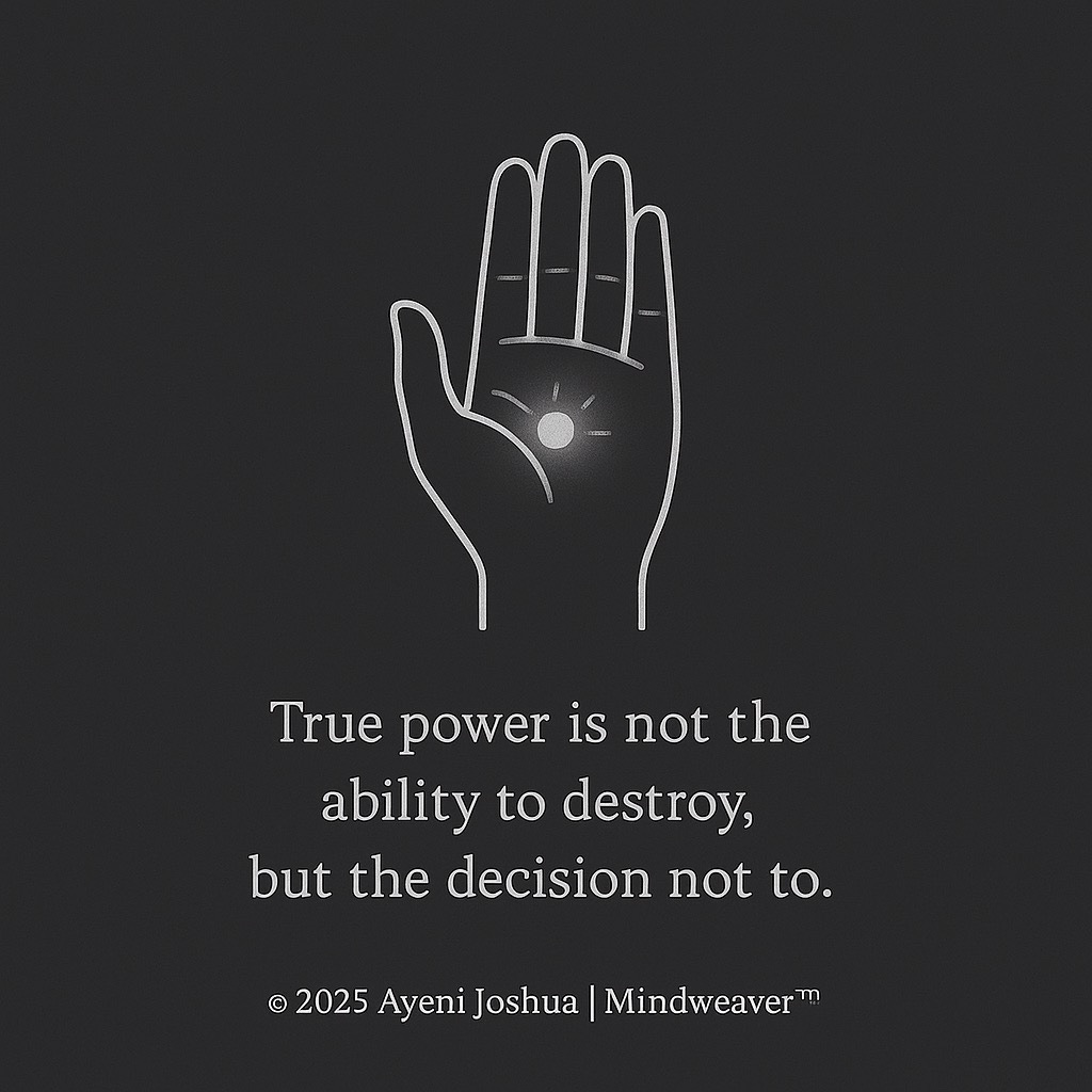 True power is not the ability to destroy on impulse. It is the ability to pause in the space between desire and action, and to choose not to.